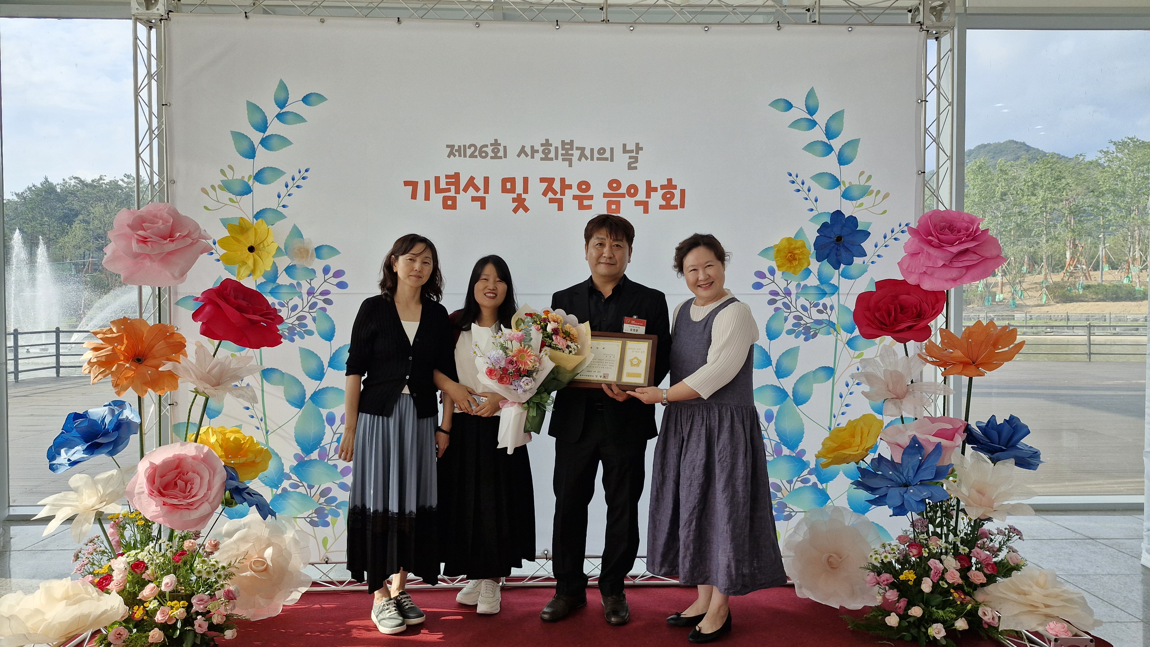 Á¦26ȸ »çȸº¹ÁöÀÇ ³¯À» ±â³äÇÏ¿© »ý»ê¹×ÆÇ¸Å±â»çÀÎ À¯¿µ¹® Á÷¿ø²²¼ °øÁÖ½ÃÀÇÀå ǥâ ¼ö¿©¿¡ ÃàÇϵ帳´Ï´Ù.